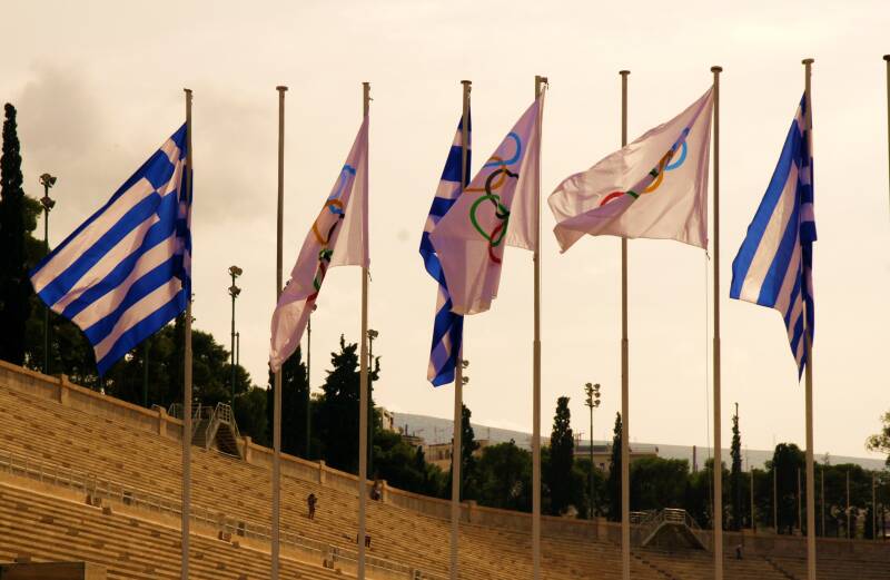 Griekenland is de bakermat van de Olympische Spelen. Die werden gehouden in Olympia; het oude stadion van Athene werd gebruikt voor de spelen van de Panathenaeën. Dat stadion werd in 329 v. Chr. gebouwd en bood plaats aan naar schatting 50.000 mensen. De resten van dit hoefijzervormige stadion werden in 1870 blootgelegd, waarna het werd gerestaureerd voor de eerste moderne Olympische Spelen van 1896.