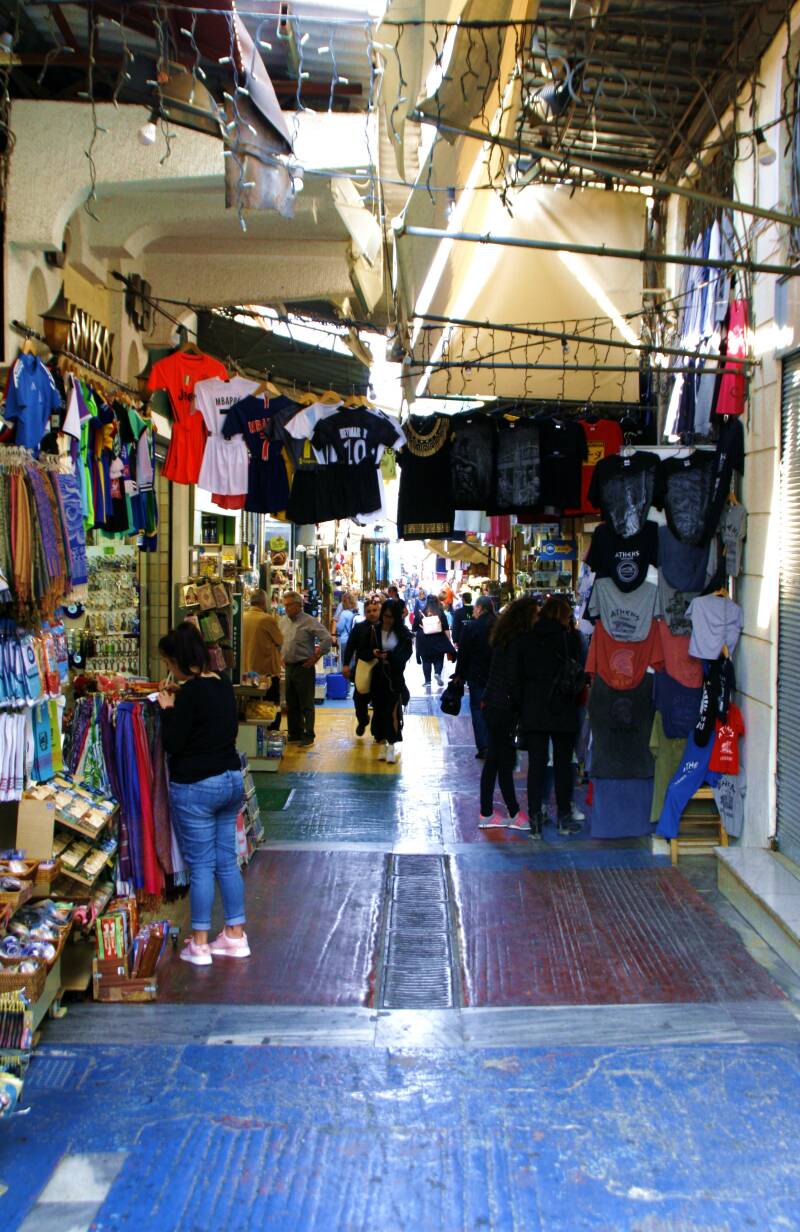 Ten noordoosten van Plaka ligt Monastiraki. Die wijk heeft veel weg van een grote Oosterse bazaar, vooral op zondag als honderden handelaren hun waren te koop aanbieden. Het hart van deze rommelmarkt ligt iets ten westen van het Monastirakiplein, op het Avyssiníasplein en in de straatjes eromheen. Hier zijn vele restaurants, bars en clubs waar de Grieken hun vertier zoeken.