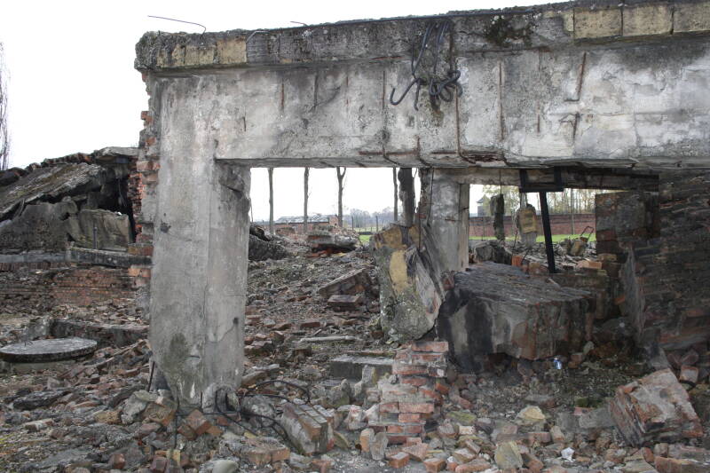 Toen de Russen in januari 1945 Auschwitz naderden, begonnen de Nazi's documenten te verbranden, gaskamers en crematoria (verbrandingsovens) op te blazen, en ander bewijsmateriaal te vernietigen.