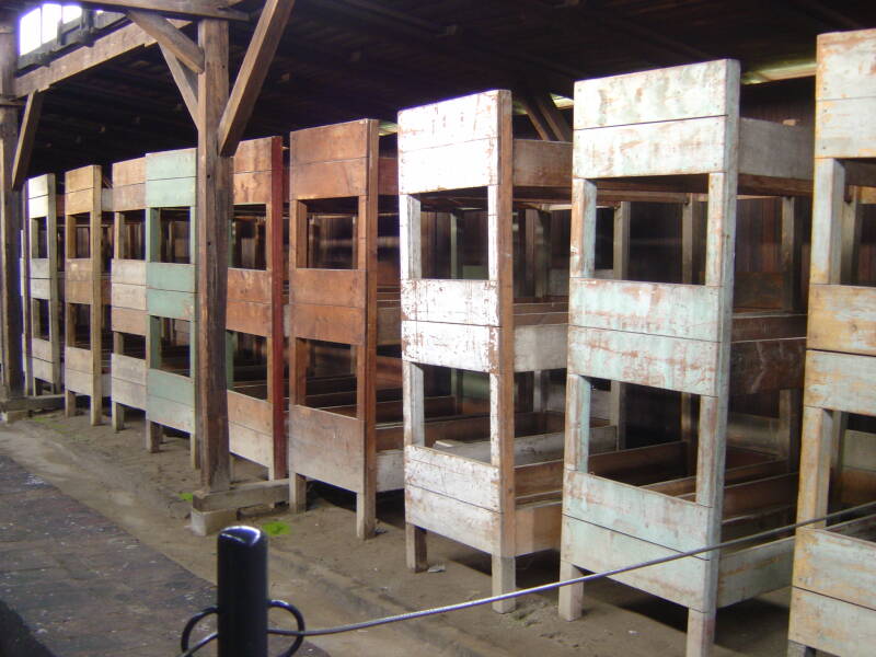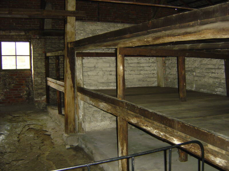 stonden links en de barakken voor mannen stonden rechts van de spoorlijn. Achter de barakken voor mannen, tegen het bos aan, waren de barakken waar de Roma en Sinti in ondergebracht waren. De vijf crematoria waren te vinden aan de rand van het bos en het pad daarheen liep links van de spoorlijn. Birkenau was net buiten het dorp Brzezinka gelegen. De nazi's noemden het kamp Birkenau vanwege het feit dat het midden in een berkenbos lag. Auschwitz II was een enorm complex bestaande uit houten barakken die in eerste instantie waren gebouwd om 52 paarden onder te brengen. Maar door de efficiënte manier waarop de nazi's de barakken indeelden en plaatsen toewezen, werden achthonderd personen, mannen, vrouwen en kinderen in de barakken geplaatst. Dat betekende dat zes, acht en soms meer mensen een plank moesten delen om te slapen.