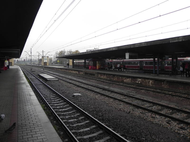 De spoorlijn en het perron waar de slachtoffers uit moesten stappen is in het midden van de foto te zien. De barakken voor vrouwen