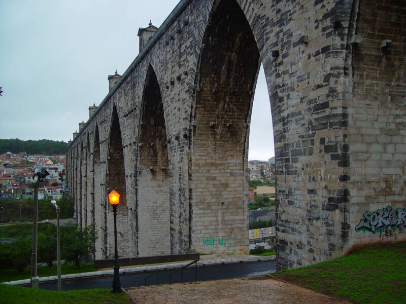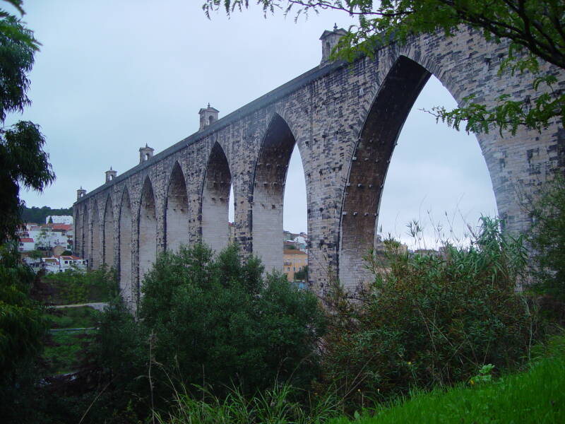 Dit historisch aquaduct werd in 1731 gebouwd in opdracht van koning João V, met als bedoeling de stad van water te voorzien. Het bouwwerk werd pas in de 19de eeuw voltooid, maar het levert al water sinds 1748. Het project werd gefinancierd met een extra belastingen op vlees, olijfolie, wijn en andere producten.