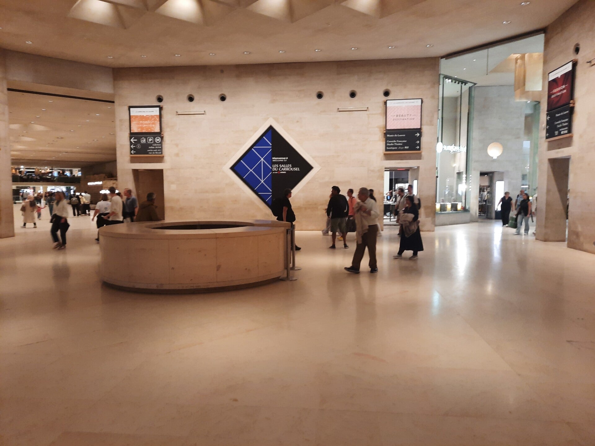 Dit is een winkelcentrum van de Unibail-Rodamco-Westfield groep gelegen in het 1ste arrondissement van Parijs onder de omgekeerde piramide van het Louvre. De omgekeerde piramide is hier te zien. We zagen dat veel toeristen een foto maakten waarop lijkt dat ze de piramide op de punt van de vinger dragen. Daarna gaan ze naar boven om op het plein nogmaals een foto te maken waarop ze de piramide fotograferen met de vinger aan de bovenkant. De naam is afgeleid van twee nabijgelegen locaties: de Place du Carrousel en het Louvre museum.Naast de winkel- en restaurantfuncties wordt de locatie ook gebruikt voor tentoonstellingen in les Salles du Carrousel. Het Salon des Beaux Arts verwelkomt er regelmatig kunstenaars van diverse strekkingen om de bezoekers een beeld van het hedendaags kunstaanbod te bieden.