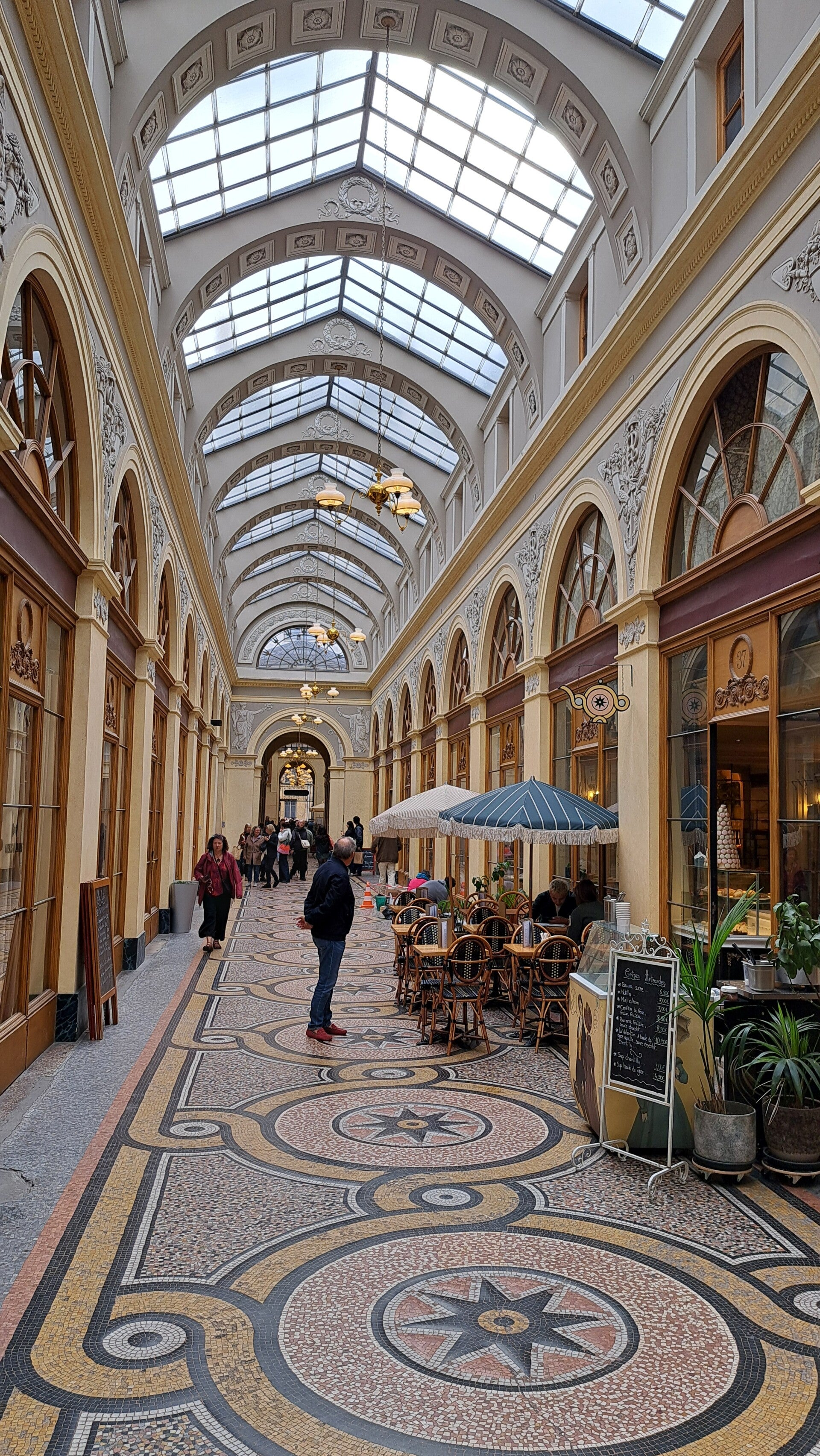 Ooit een toevluchtsoord voor chique shoppers die de modderige straten wilden vermijden, ademt de galerij nog steeds de charme van de 19e eeuw. Boetieks, antiekwinkels, boekhandels en cafés vullen de ruimte met leven, terwijl elke boog en elk mozaïekpatroon fluistert over Parijse grandeur van weleer.