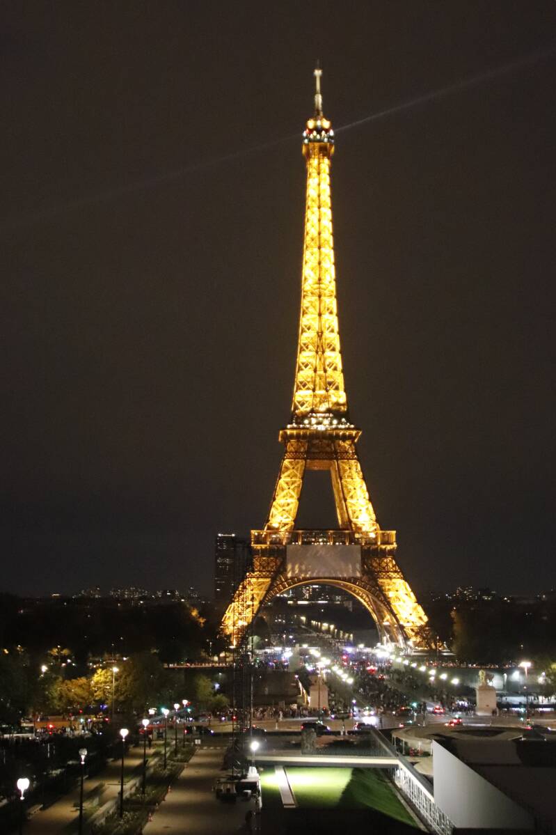 Het was rond 7 uur toen we weer aan wal gingen, dus de hoogste tijd om iets te gaan eten in de buurt van de Eiffeltoren. Tijdens het eten werd het langzaam schemerig en werd de toren verlicht. Ook dit is de moeite waard om een keer mee te maken als je toch in Parijs bent.