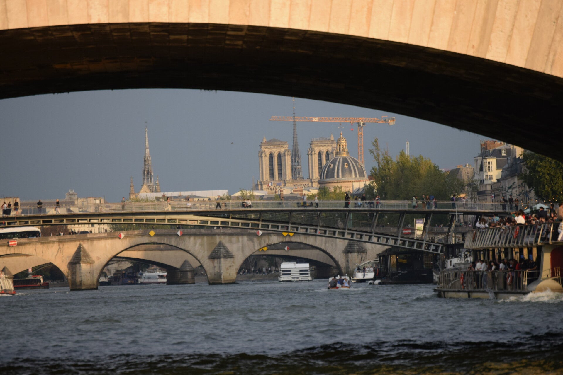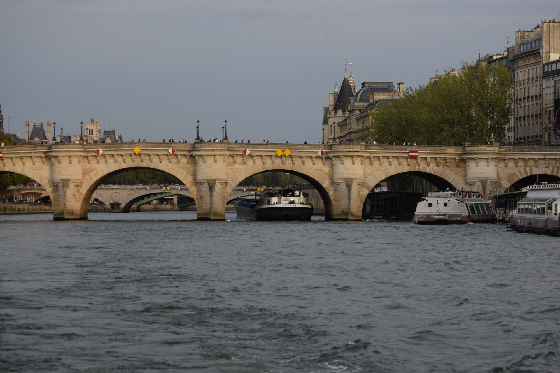 Het leek ons wel leuk om de dag af te sluiten door een bootreisje te maken over de Seine. Vanaf de boot kwamen we langs verschillende beroemde gebouwen en uiteraard gingen we onder de prachtige bruggen door die over de Seine liggen. Uiteraard kom je dan ook onder Pont Neuf door.
