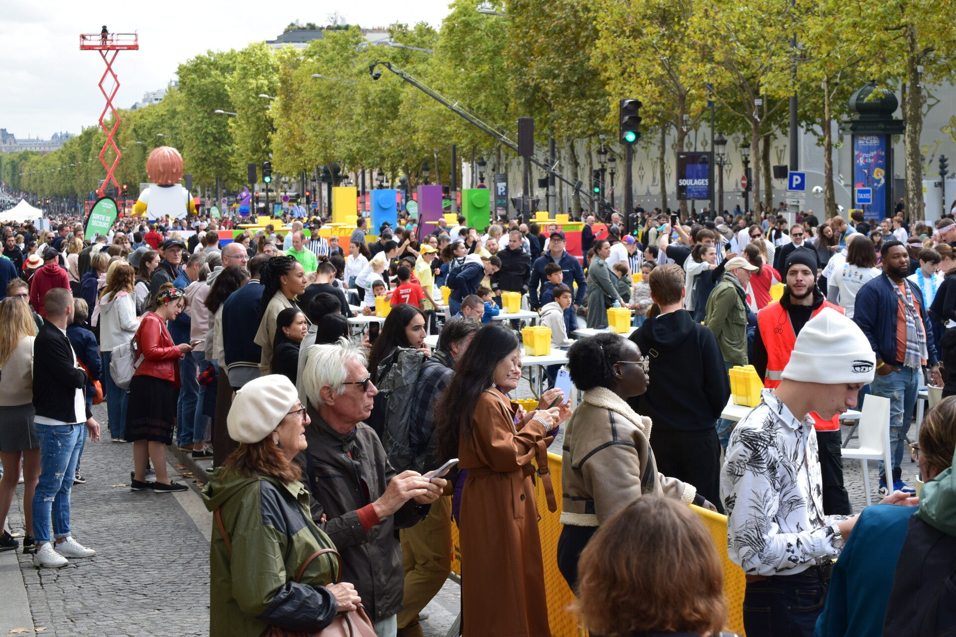 Er was een legowedstrijd gaande op de Camps-Elysées. Voor zover wij het hebben begrepen was het Grand Tournoi LEGO des Champs Een enorm groot festijn met als hoofdprijs een reis naar Denemarken waarvoor een groot deel van de straat was afgezet.
